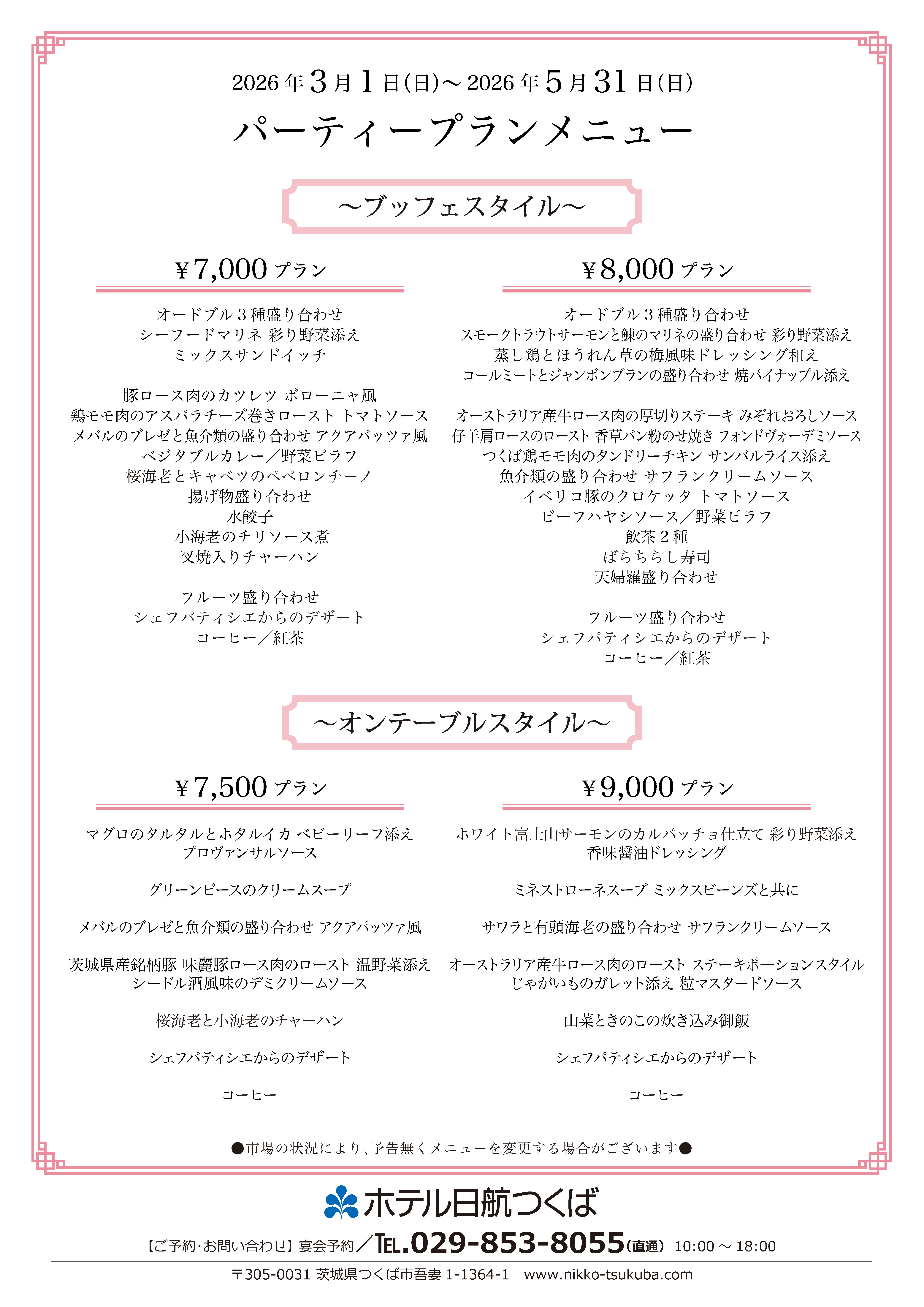 ホテル日航つくば 料飲部 宴会予約課 10:00~18:00