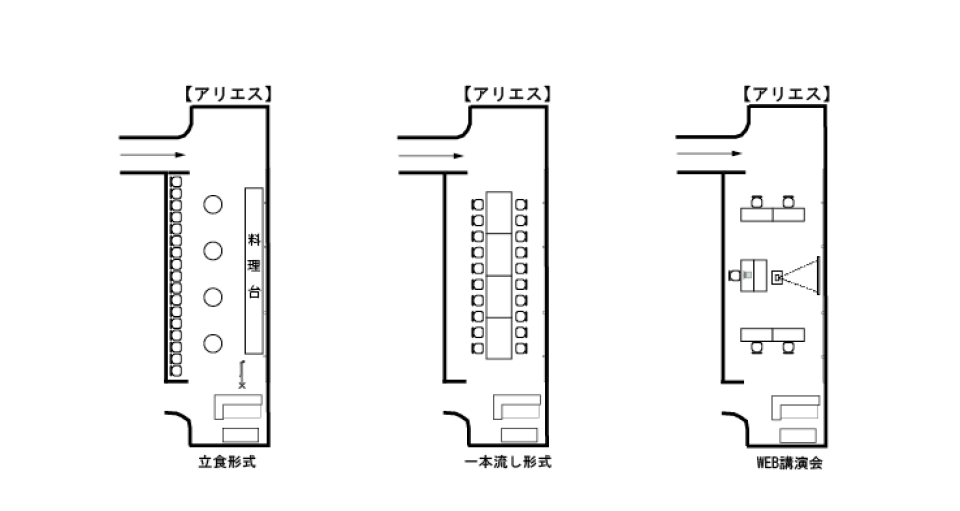 | 着席 | 立食 | スクール | シアター | ||||