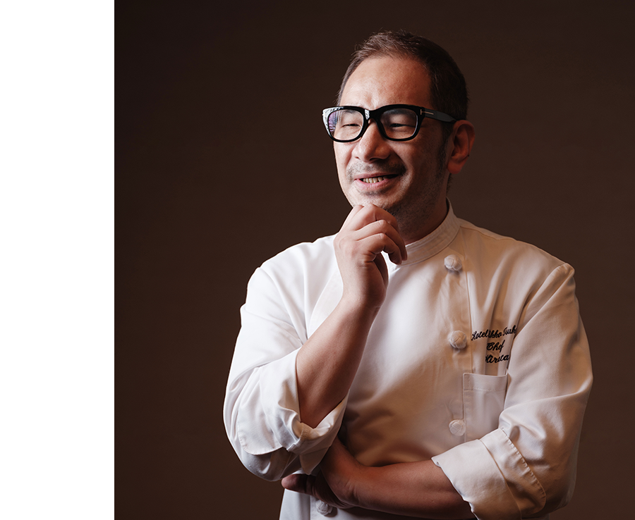 世界各国を旅し、各地の銘菓を食べ歩いた経験をもとに、デセールの進化と開発に情熱を注ぐ。パティシエの枠を超え、あらゆる食材をフラットに捉え、キュイジニエのような鋭い感性と発想で生み出す、フレッシュなデセールづくりをモットーとする。常識にとらわれない大胆な組み合わせで、ここでしか味わえない驚きと感動を届ける。